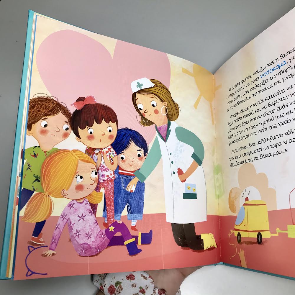 Κατά τη διάρκεια της ημέρας, μια νηπιαγωγός αναλαμβάνει να φέρει εις πέρας πολλά διαφορετικά καθήκοντα. Κουμπώνει τα μπουφάν, ανοίγει τα φαγητά, βοηθάει στο κλείσιμο της τσάντας, τρέχει να προλάβει το τηλέφωνο και να ετοιμάσει τις εργασίες των παιδιών. Η κυρία Κατερίνα, όπως λένε τα παιδιά της τάξης της τα προλαβαίνει όλα!